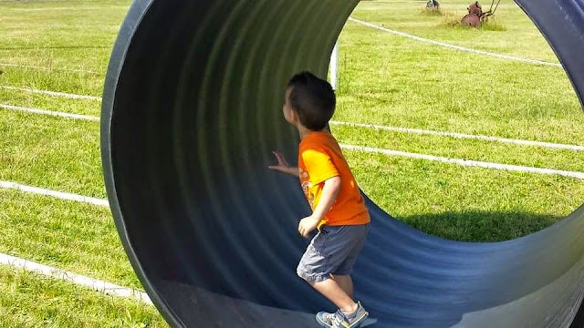 We ate lunch & everyone played some more! There was a corn box/pool that the boys all loved, cow train rides & a hamster wheel like game. I was actually quite surprised the boys went on the cow train ride by themselves, they've never gone on anything without one of us with them but they went & did great.